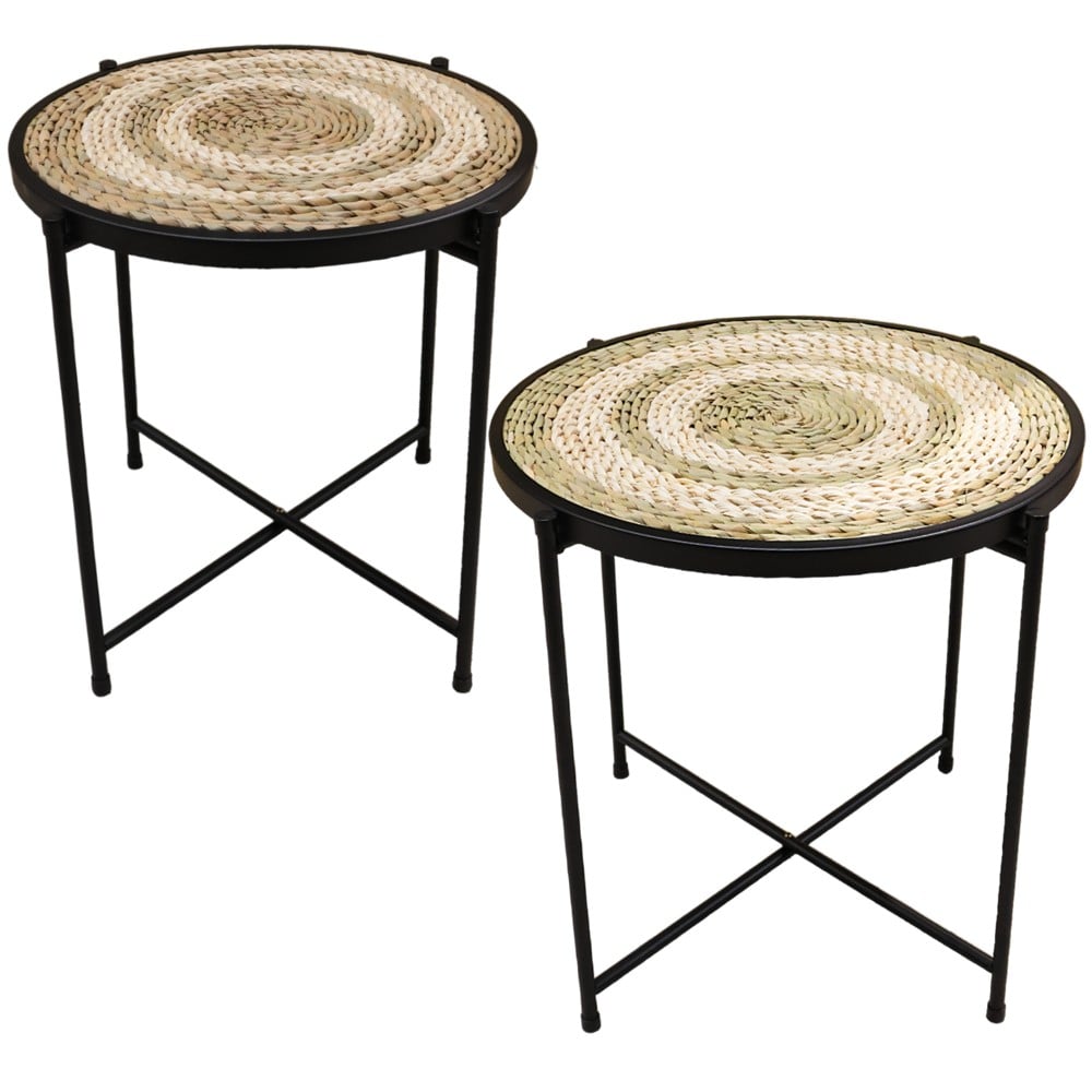 Ky set tavolinë mesi ofron një kombinim të bukur mes elementeve metalike dhe natyrale, duke krijuar një estetikë tërheqëse dhe të modernizuar. Seti përfshin dy tavolina me dimensione të ndryshme dhe të përshtatshme për çdo ambient. Struktura e saj e zezë e metalit jep një ndjesi moderne dhe elegante. Tavolinat mund të përdoren si shtesa në dhomën tuaj të ndenjes, si tavolina kryesore dhe tavolinë ndihmëse, ose në çdo hapësirë tjetër ku do të duhej një sipërfaqe shtesë. Përveçse janë praktike, ato gjithashtu shërbejnë si objekte dekorative që shtojnë stil dhe personalitet në ambientin tuaj