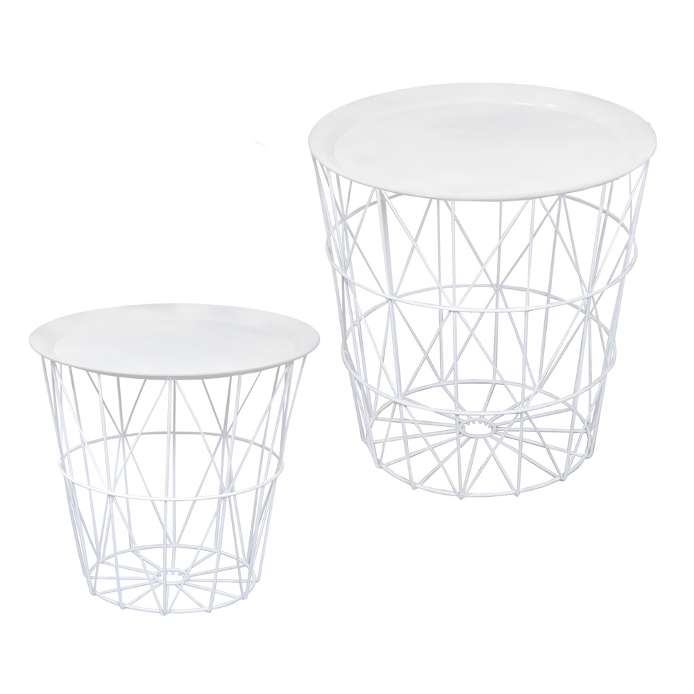 Tavolinë mesi, set 2 copë, strukturë metalike, e bardhë, 1-Ø35 xH34 cm; 1-Ø40 xH39 cm