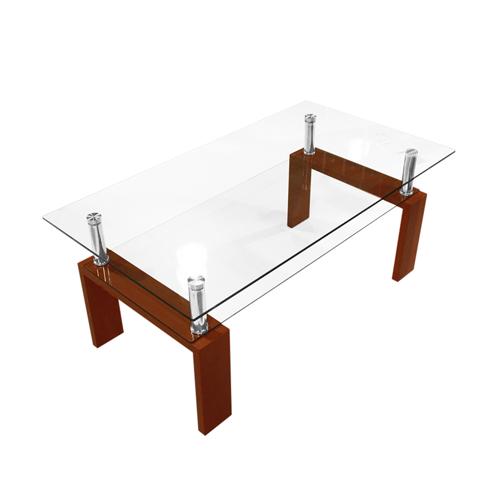 Tavolinë mesi, strukturë druri dhe xham temperuar, transparente, 110x60xH60 cm