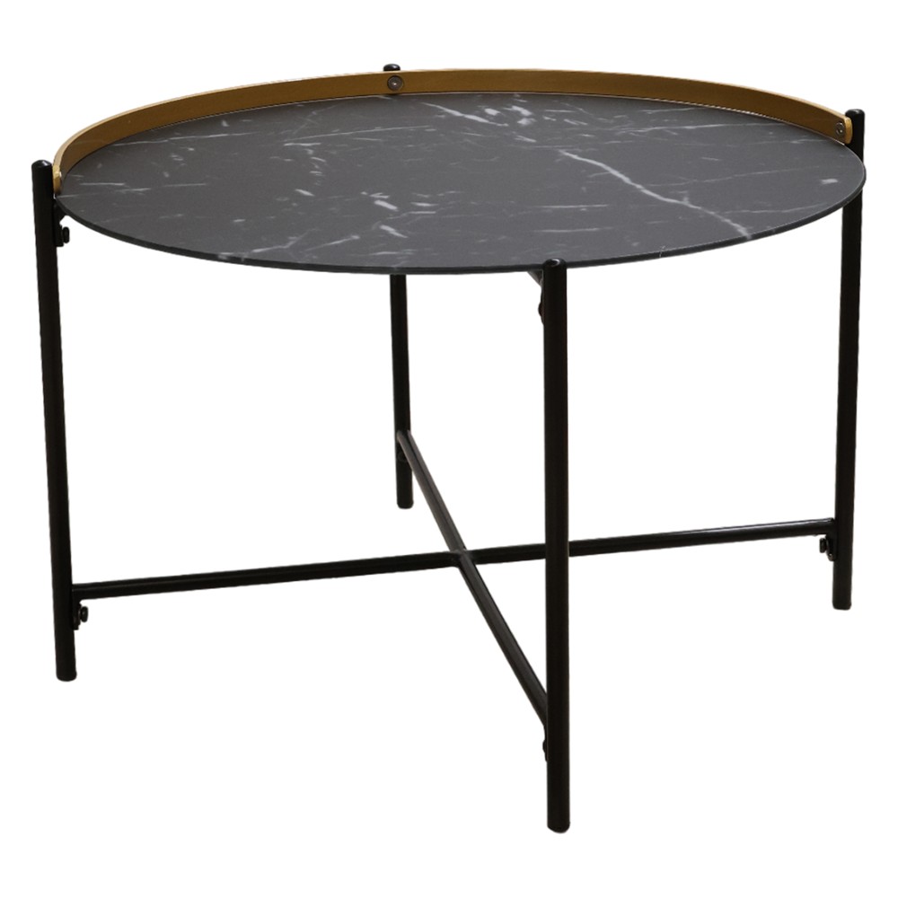 Tavolinë mesi, syprinë xham i temperuar 5mm, strukturë metali, e zezë, Ø60xH45 cm
