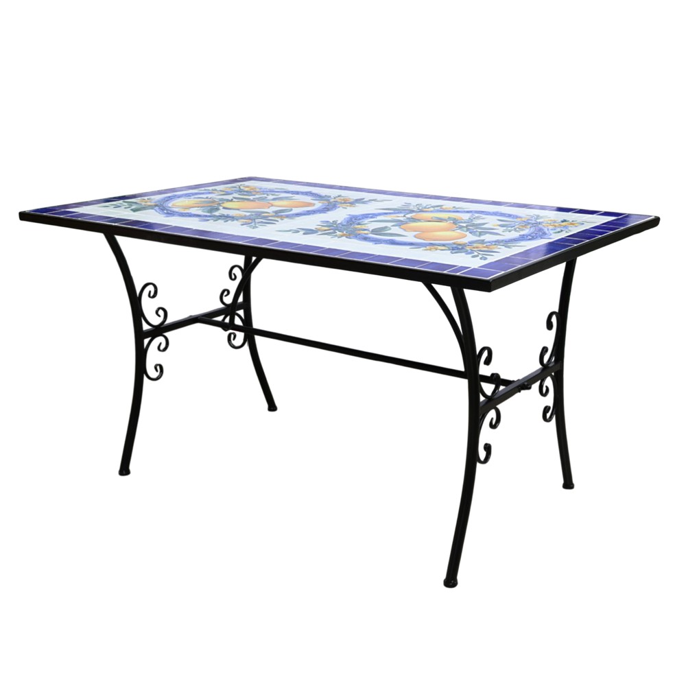 Tavolinë Mosaic me strukturë metalike dhe sipërfaqe qeramike, me dimensione 140x90xH75 cm. Konstruksioni metalik i zi siguron qëndrueshmëri dhe stabilitet, ndërsa sipërfaqja qeramike me motive limoni i jep tavolinës një pamje të freskët, dekorative dhe të gjallë. Dizajni Mosaic kombinon funksionalitet dhe estetikë, duke e bërë tavolinën të përshtatshme për ambiente të jashtme ose të brendshme, si oborre, kopsht ose ballkone, dhe duke sjellë një element artistik dhe veror që zbukuron hapësirën ku vendoset.