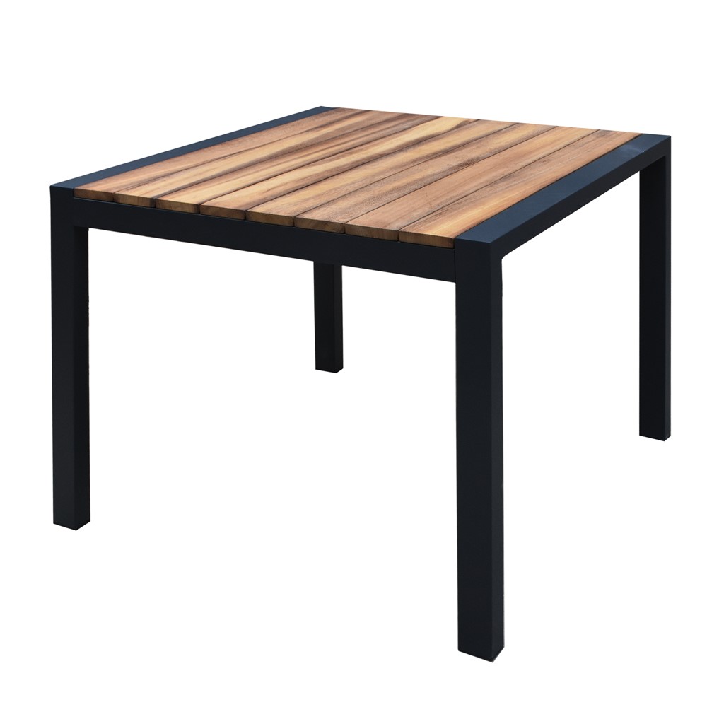 Tavolinë ngrënje, alumin + dru iroko, gri dhe kafe, 90x90xH75 cm