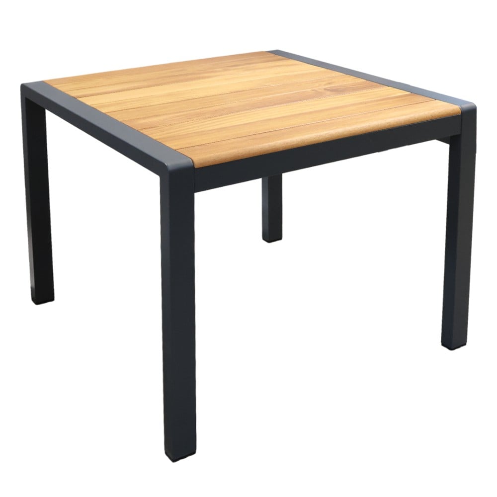 Tavolinë ngrënje, alumin + dru iroko, gri dhe kafe, 90x90xH75 cm