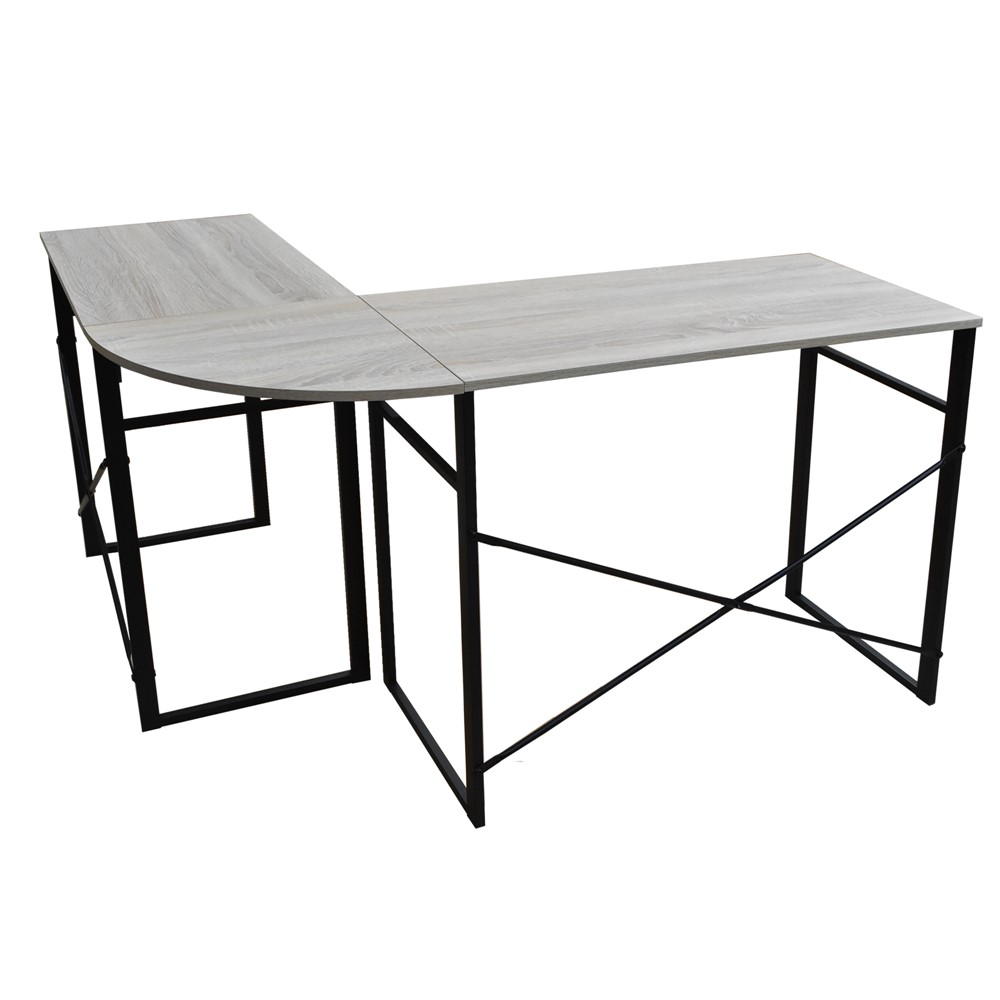 Tavolinë zyre, formë L, strukturë metalike (zezë), syprinë melaminë, lisi, 123x103xH72 cm