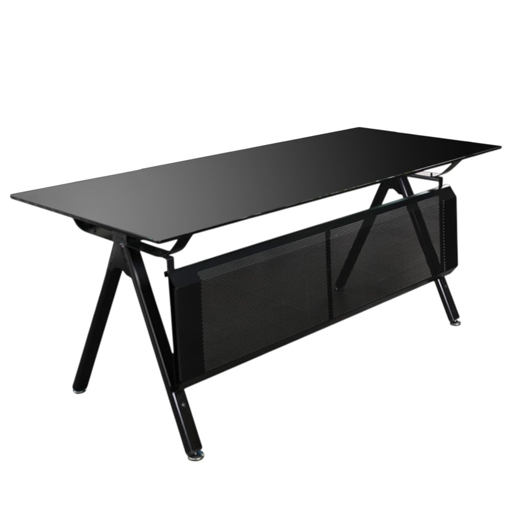 Tavolinë zyre, xham i temperuar, strukturë metalike, e zezë, 180x80xH72 cm