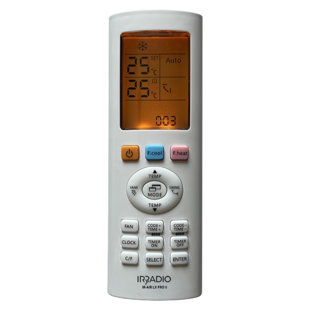 Telekomandë universale me infra të kuqe për kondicionerë dhe pompa nxehtësie e pajtueshme me të gjitha markat më të rëndësishme në treg, duke kopjuar funksionet kryesore të telekomandës origjinale.