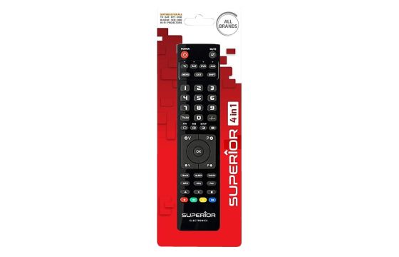 Telekomandë universale, Superior, 4 në 1, TV, TDT, SAT, DVDs, BLURAY, Projectors, Soundbars, VCR, Media Center, 2xAAA, 21x4.7x2 cm