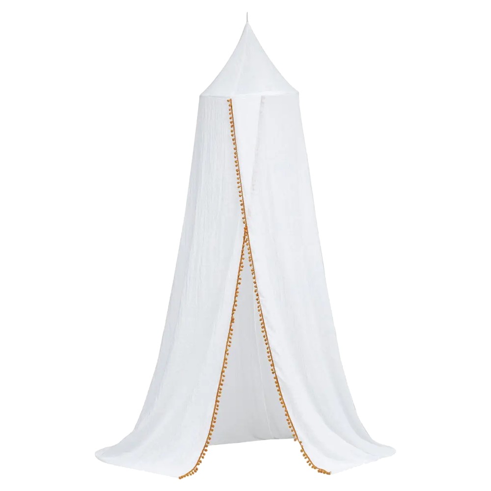 Kush nuk e ka ëndërruar të ketë një tendë në dhomën e tij kur ishin të vegjël? Ajo prekje aventureske do ta shndërrojë dhomën tuaj në një oaz dhe do të shtojë atë atmosferë misteri. Kjo tendë me pëlhurë pambuku dhe poliester dhe dekorime ngjyrë okër është ëndrra e të gjithëve!