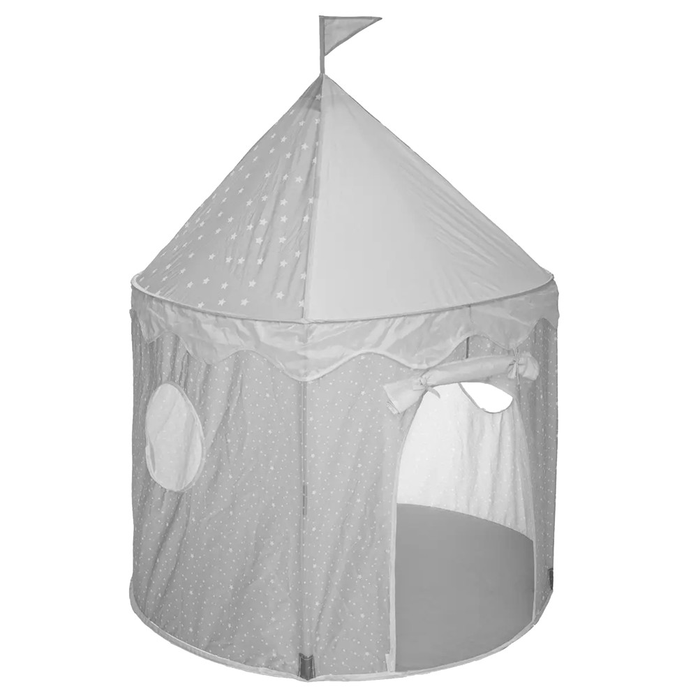 Tendë e vogël për fëmijë, me strukturë prej materiali plastik të përforcuar me fibër xhami, e cila lejon një qëndrueshmëri dhe elasticitet më të lartë gjatë përdorimit, dhe me veshje prej materiali poliestre, me përmasa 135x100x100 cm, në ngjyrë gri. Tenda është e pajisur me një derë dhe me dy dritare të vogla në formë rrethore në pjesën anësore. Përdoret nga fëmijët për të luajtur ose edhe për dekorimin e dhomave të gjumit të fëmijëve. Ky produkt është i përshtatshëm për përdorim nga fëmijë të moshës 2 deri në 7 vjeç.