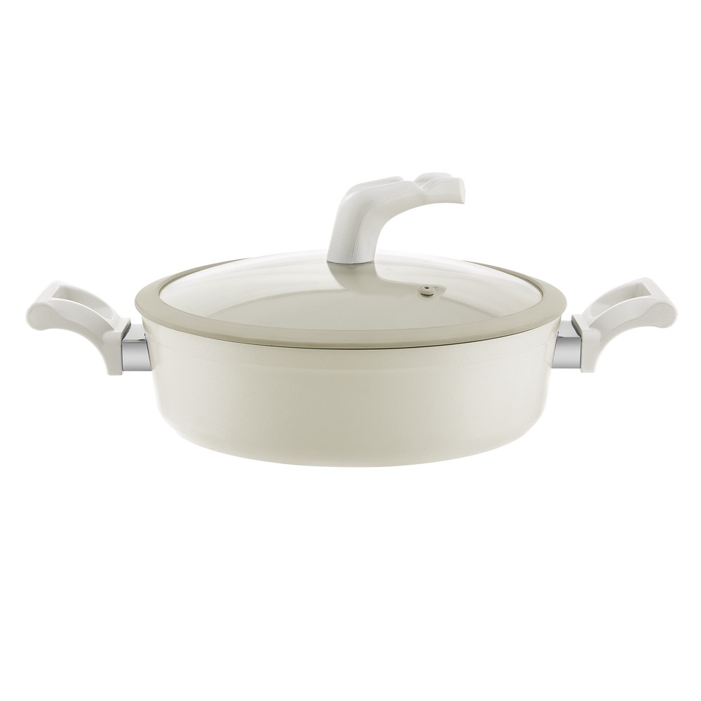 Vega induction shallow pot with glass lid and ceramic non-stick coating, aluminum, cream, 3.55L / Dia. 26 x H 7.5 cm