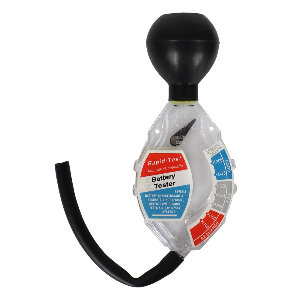 Hidrometer për bateri me elektrolit. Sherben për të matur densitetin e elektrolitit. Rangu mates nga: 1.100-1.300g / cm3. I përshtatshëm për bateri: 6V, 12V, 24V. Materiali: plastike e qendryeshme, gome. Ekran me ngjyra.
