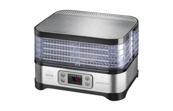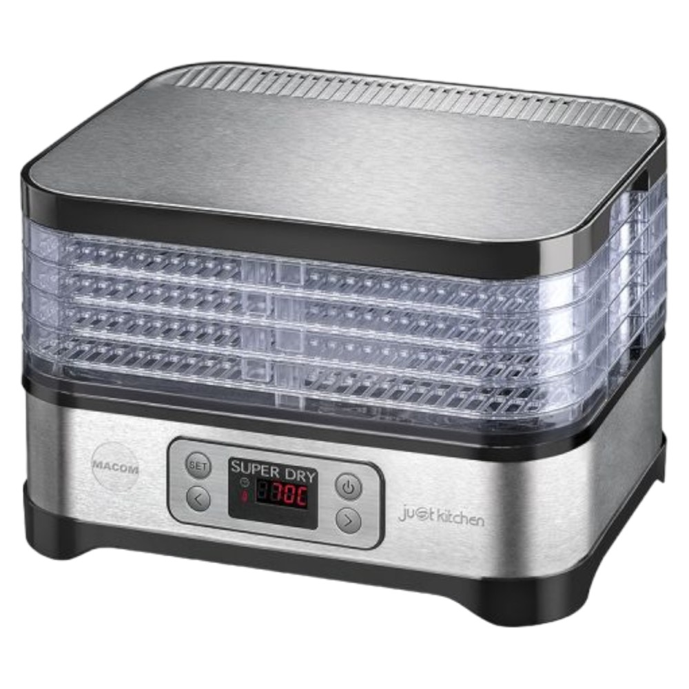 Dehidratues i fuqishëm i ushqimit me 5 ndarje, ekran dixhital me kohëmatës dhe përzgjedhës të temperaturës. Super thatë në mënyrë efektive dhe lehtë dehidraton kërpudhat, perimet, erëzat dhe frutat.