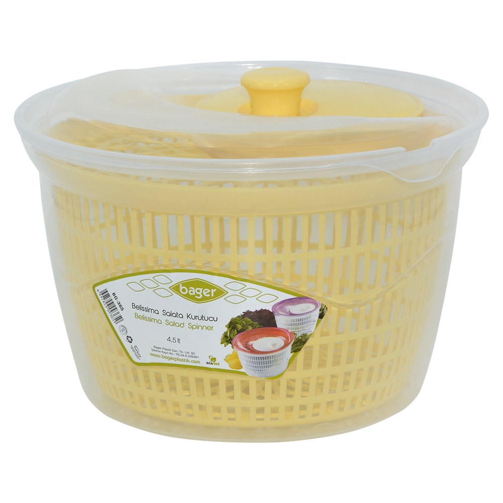 Spinera e sallatës merr përpjekjen për të hequr ujin nga sallata juaj sapo ta keni larë atë. Thjesht përdorni dorezën në pjesën e sipërme të tasit për ta kthyer në drejtim të orës dhe për të hequr ujin e tepërt. Mund të përdoret për të shtuar vaj, uthull ose salcë për sallatë duke përdorur prizën e thërrmijës në krye të njësisë. E thjeshtë, praktike dhe elegante, këto tharese sallate janë perfekte për të siguruar sallatën tuaj të shijshme pas larjes.