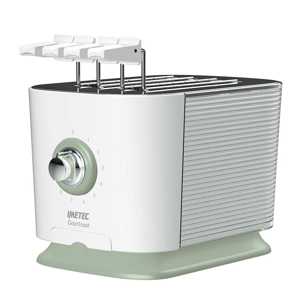 Imetec GranToast. Numri i fetave: 2 feta, Ngjyra e produktit: Jeshile, Bardhë, Lloji i kontrollit: Rrotullues. Fuqia: 600 W, Tensioni i hyrjes AC: 220 - 240 V, Frekuenca e hyrjes AC: 50 Hz. Gjatësia e kordonit: 1 m, Gjerësia: 17.2 cm, Thellësia: 28.5 cm.