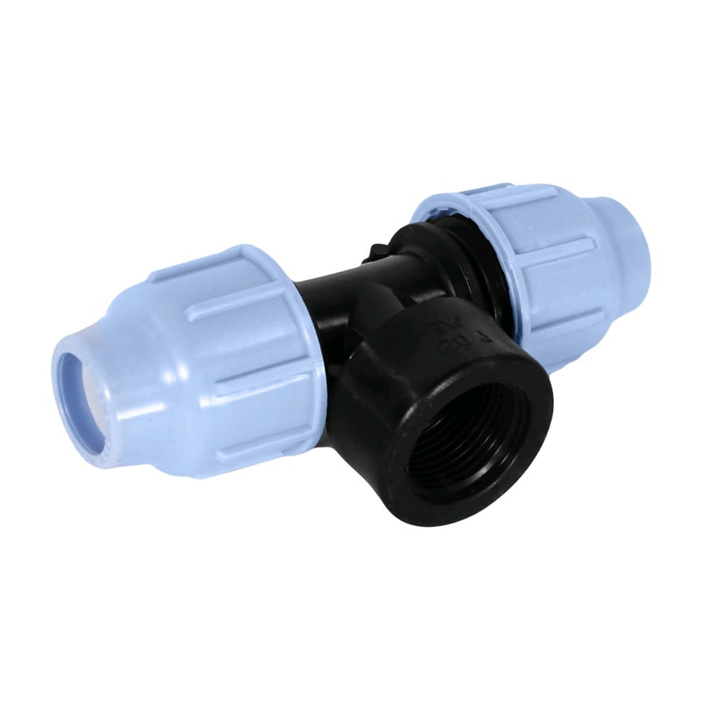 Ti me rakord 25x1"x25 mm femër prej PP me kënd 90°. Përdoret gjërësisht sot në Europe për instalimet këndore të linjave ujësjellëse, vaditjet në bujqësi etj. Kjo ti bën te mundur degezimin e rrjetit në kënd 90°. Kjo ti bashkon tubin Ø 25 me rakorderi te tjera me anë të filetove, për bashkimin me fileto rekomandojmë të përdoret teflon ndërsa tubi bashkohet me ti-në në mënyrë mekanike me rakord. E prodhuar me standarte Europiane, rezistent ndaj lëndëve gërryese dhe projektuar për t'i bërë ballë presionit deri në 16 Bar.
