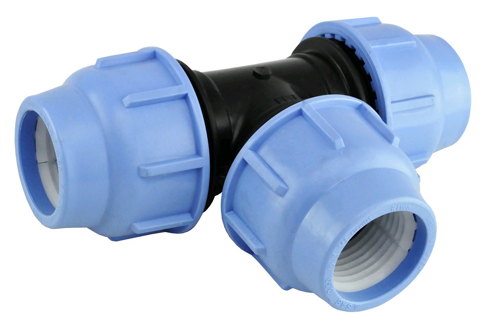 Ti me rakord 63x63x63 mm, prej PP me kënd 90°. Përdoret gjërësisht sot në Europe për instalimet këndore të linjave ujësjellëse, vaditjet në bujqësi etj. Kjo ti bën te mundur degezimin e rrjetit në kënd 90°. Kjo ti bashkon tre tuba të rrjetit me anë të shtrengimit mekanik me rakord. E prodhuar me standarte Europiane, rezistent ndaj lëndëve gërryese dhe projektuar për t'i bërë ballë presionit deri në 16 Bar.