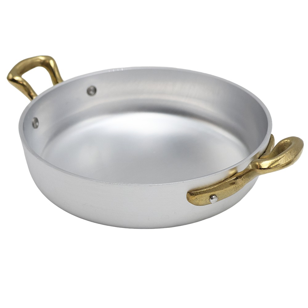 Tigan i vogël profesional me dy doreza, Përmasa: D. 16 x 4 cm, Ngjyra: Argjend, Materiali: Alumin
