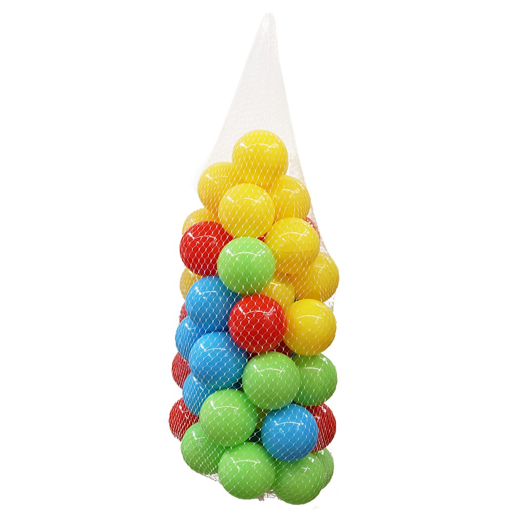 Topa të vegjël për fëmijë, prej materiali plastik jo toksike, në formë rrethore, në përmasë 9 cm, me paketim 50 copë. Të përshtatshme për tu përdorur në park lodrash apo kosh lojërash.