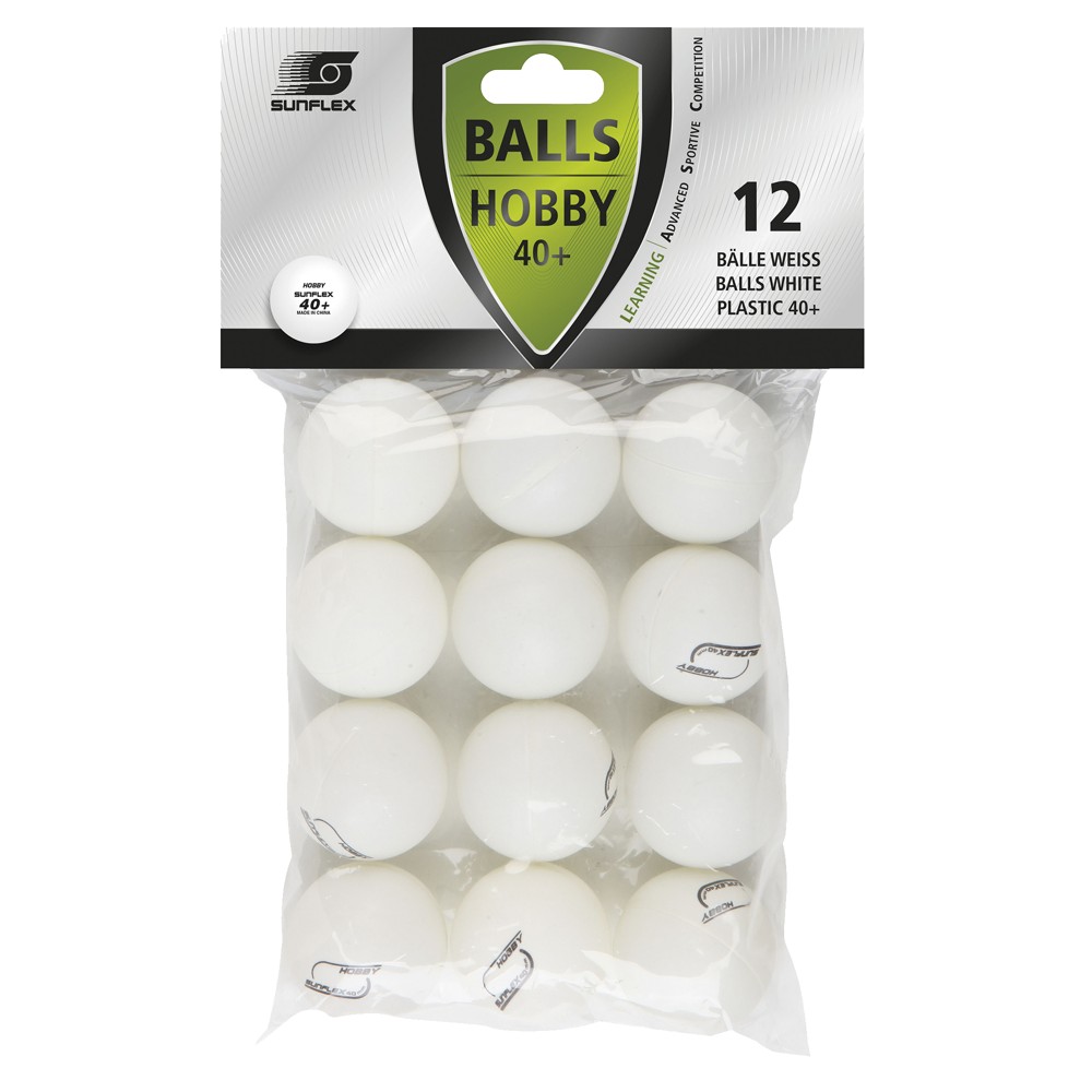 Table tennis balls, Sunflex Hobby, 12 pieces, PVC, white color