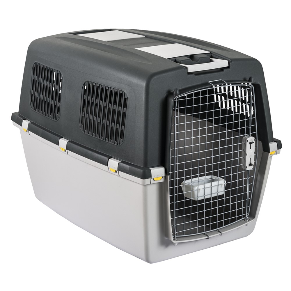 Prodhuar sipas standarteve me te larta idustriale. Mundeson transportimin e kafshes ne te gjitha mjetet transportuese si ( aeroplan, tren, aije, autobus, etj ), duke u bazuar ne regulloren e IATA. Struktura rezistente, porta metalike dhe siguresat e pranishme ne elementet montues, mundesojne nivel maksimal sigurie gjate udhetimit. Hapesira eshte e mjaftueshme per qendrim te lirshem te kafsheve me trup te madh. Tasi i ujit, lejon freskimin dhe sigurimin e elementit jetik edhe ne fluturimet e largeta. Doreza terheqese ben me te lehte transportimin ne aeroport, port dhe terminal. Ideale per transportimin komfort te mikut tuaj besnik.