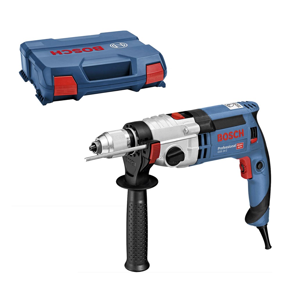 Trapani GSB 24-2 është mjeti më i fuqishëm në grupin e tij, më i ri për punët më të ashpra. Ka një motorr Bosch me fuqi 1100W me performancë të lartë dhe kryen punët më të rënda me diametër të madh si shpime, vidhosje dhe përzjerie. Ai mund të ruajë shpejtësi konstante edhe në punime me ngarkesë të lartë. Ka një mbështjellje metalike të fortë për më shumë jetëgjatësi. Kapsja anti-rrotullim jep më shumë siguri gjatë punëve të vështira.