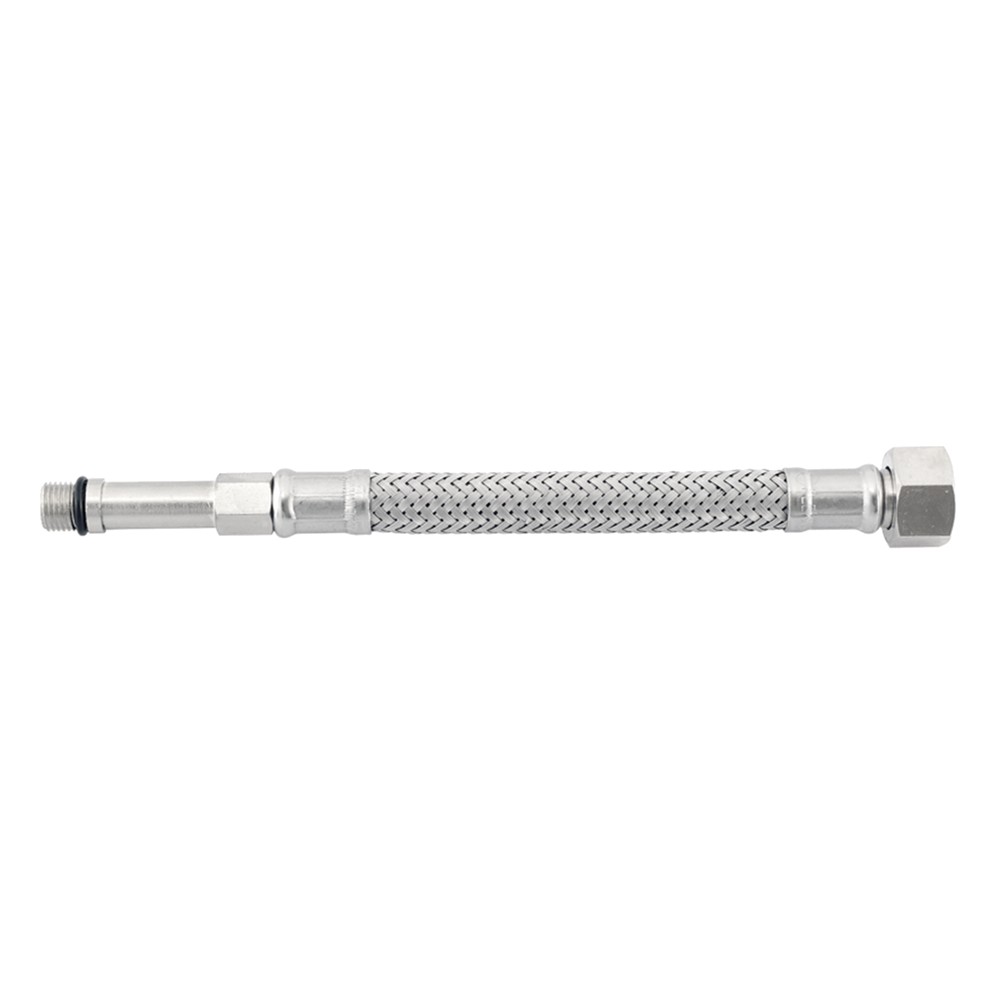 Tub fleksibël Mishelatori,3/8''x 50 cm, me thurje inoksi. Tubat fleksibël përdoren kryesisht për vendet me hapësira të kufizuara, kjo falë elasticitetit të tyre. Përbërja e tyre prej thurje inoksi i jep fortësi dhe e bën të pandikueshëm në cilësinë e ujit.