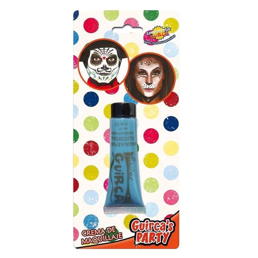 Tubet make upi në ngjyrë të kaltër. Ideale për raste të ndryshme: shfaqje, komedi, festa kostumesh, karnaval, Halloween, festa kostumesh, festa ditëlindjesh etj. Përdoret lehtësisht, hiqet lehtë dhe përbehet nga material jo toksike.