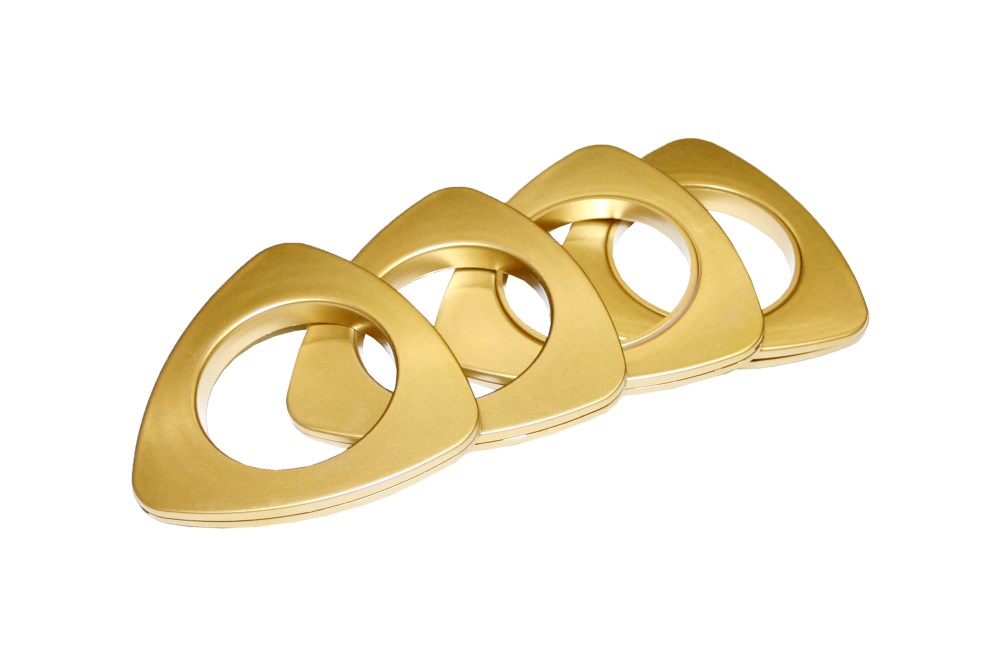 Unaza me ngjyrë Floriri, formë trekëndore dhe përmasë Ф50 mm përshtatet hijshëm me metrazhet e bardha, Kremi , dhe ngjyrat e çelëta. Këto ju ndihmojnë të krijoni një perde me pamje të plotë, të rëndë dhe interesante që plotëson dekorin e duhur të perdes e cila zbukuron dritaren tuaj, dhe ndryshon e i jep kuptim dhe stil ambientit tuaj.