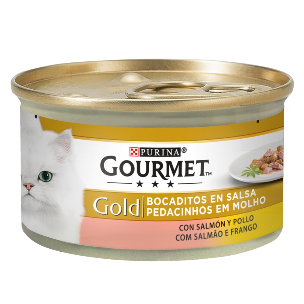 Torta me shije të artë GOURMET përmban copa të copëtuara delikate me mish viçi, pule ose shije të tjera të shkëlqyera, të kalitura me kujdes vetëm me një nuancë salce. Të gjithë vijnë së bashku në një tortë të shijshme që macja juaj të shijojë çdo kafshatë. Tortë e shijshme e artë GOURMET: e shijshme në çdo kafshatë.