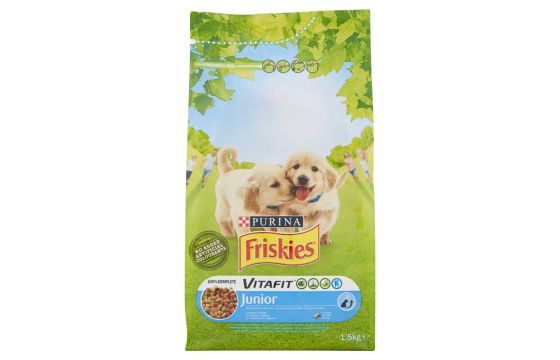 Ushqim per qen, Friskies, Junior, 1.5 kg, mish pule, qumesht dhe perime