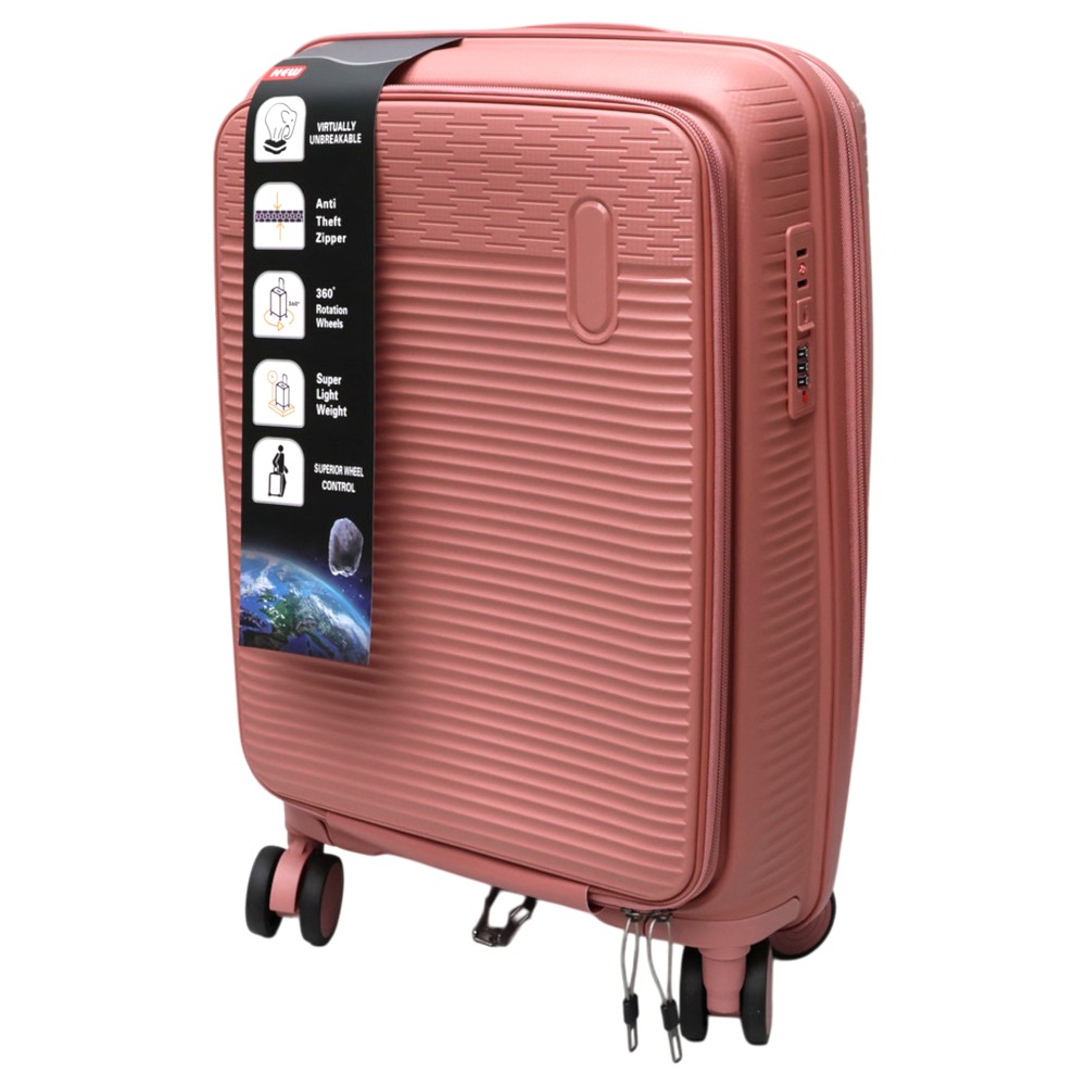 Kjo valixhe udhëtimi elegante në ngjyrë rozë gold është kombinimi ideal i stilit modern dhe funksionalitetit praktik, e krijuar për t’i bërë çdo udhëtim më të rehatshëm dhe pa stres.E prodhuar nga polipropilen cilësor, ajo garanton rezistencë të lartë ndaj goditjeve dhe gërvishtjeve, duke mbrojtur në mënyrë të sigurt sendet tuaja gjatë transportit, ndërsa madhësia kompakte 20” (inch) e bën perfekte si bagazh kabine për udhëtime të shkurtra apo biznesi. Funksioni i zgjerueshëm ofron hapësirë shtesë sa herë që ju nevojitet, duke e bërë shumë praktike edhe për kthime me më shumë bagazh, ndërsa dizajni në ngjyrë rozë gold i jep një pamje elegante dhe unike. E pajisur me rrota soft touch, kjo valixhe siguron lëvizje të qetë, pa zhurmë dhe manovrim të lehtë në çdo sipërfaqe, duke e bërë atë zgjedhjen perfekte për udhëtarët që kërkojnë komoditet, qëndrueshmëri dhe stil në një valixhe të vetme.