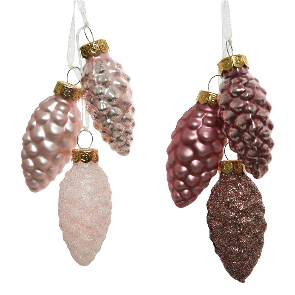 Po vlerësoni:Varëse dekoruese, boçe pishe, qelq, nuanca rozë, 2.5x6 cm