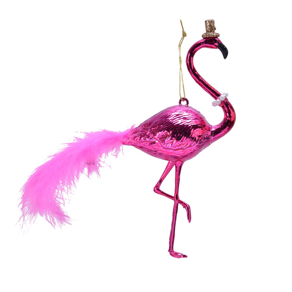 Flamingo dekorative e përshtatshme për t'u varur në pemën tuaj të Vitit të Ri. Materjali dhe ngjyrat do të shtojnë hijeshinë e pemës tuaj.