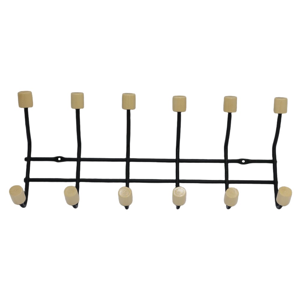 Varëse rrobash, 6 grepa, metal, e zezë/kafe, 37x7xH14 cm