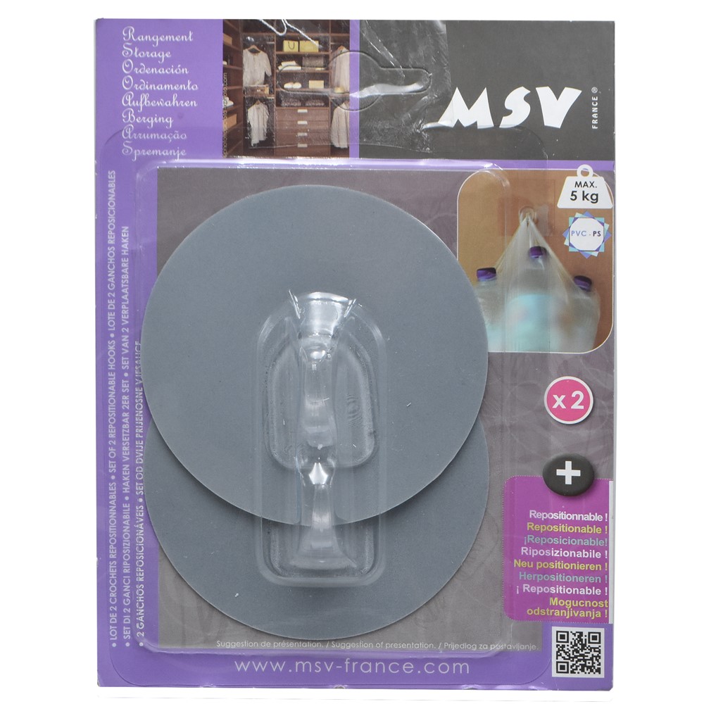 Varëse rrobash, prej materiali pvc/polipropilen, në ngjyrë gri. Varësja është e pajisur me një grep për mbajtjen e rrobave dhe me një sistem montimi me ngjitje, i cili lejon që të vendoset në të gjitha llojet e sipërfaqeve të sheshta jo-poroze, përfshirë sipërfaqet e xhamit, pasqyrave apo pllakave, pa patur nevojë për të shpuar murin. Përdoret për mbajtjen e peshqirëve, sfungjerëve të dushit dhe rrobave në tualete apo për mbajtjen e pecetave, përparëseve të gatimit dhe aksesorëve të tjerë në kuzhinë. Ky produkt është i përshtatshëm për përdorim në ambiente profesionale dhe jo-profesionale.