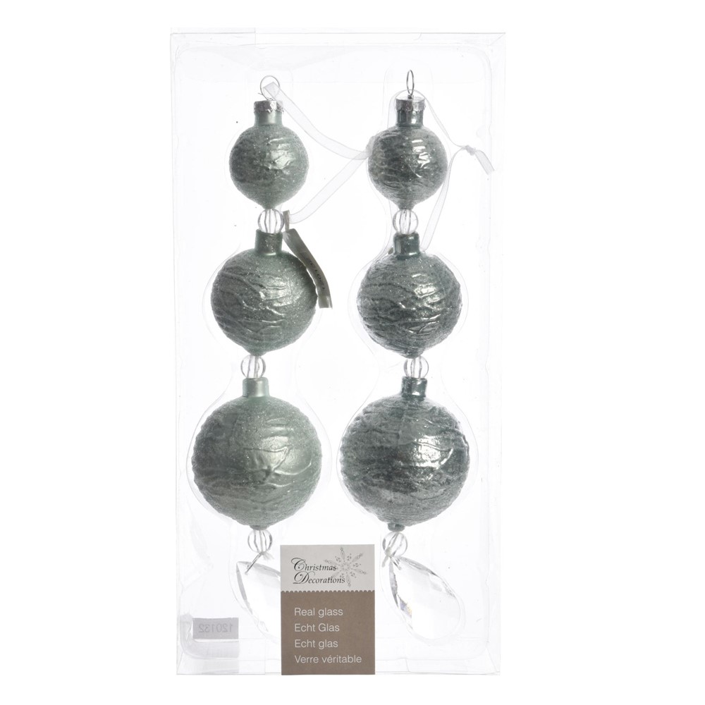 Varg dekorues me sfera plastike, ngjyrë jeshile e zbehtë, diametër 5 cm dhe gjatesi 18 cm. Ky aksesor dekorues përdoret për të zbukuruar pemen e vitit të ri, duke i shtuar magjinë e festave ambjenteve tuaja festive të fundvitit.