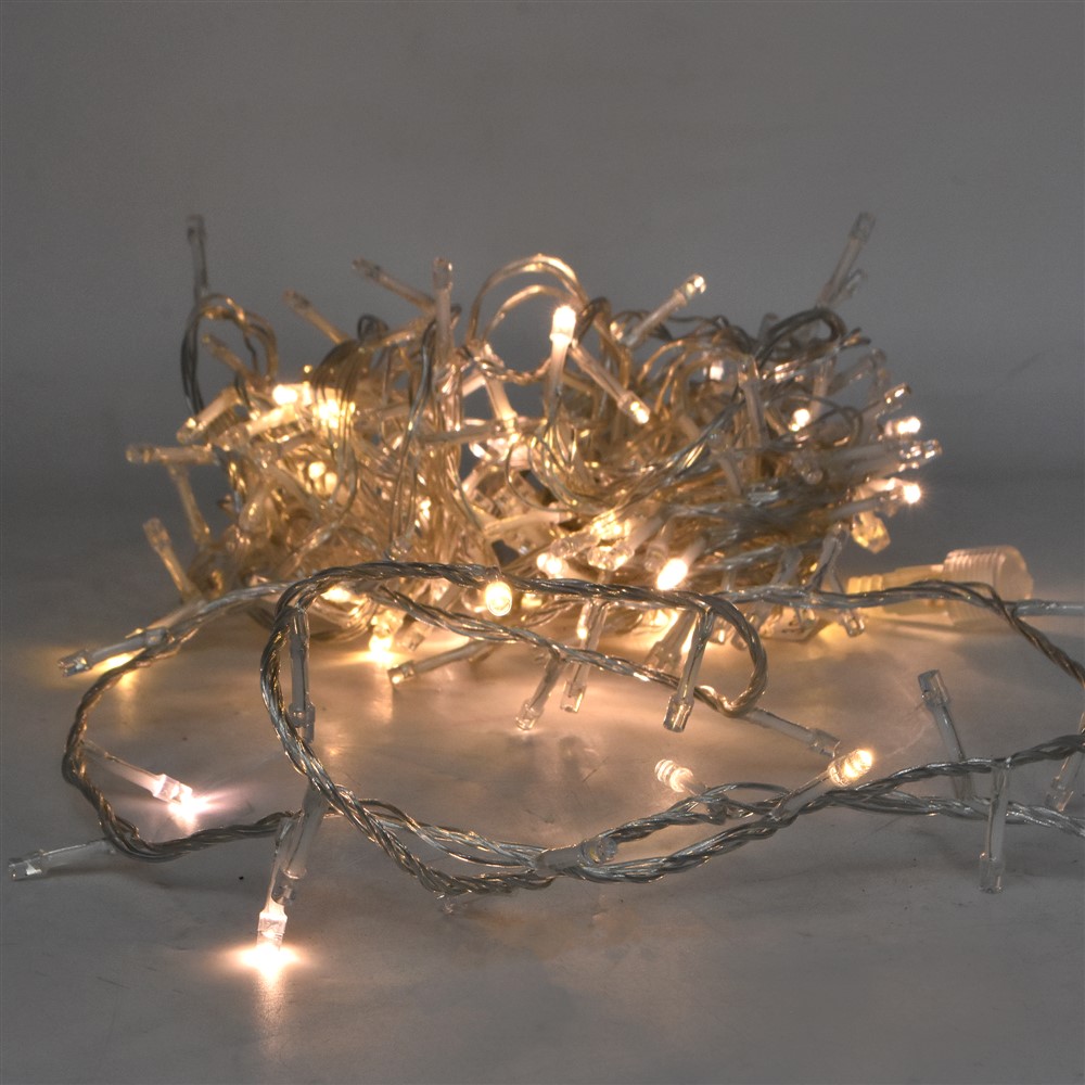 Po vlerësoni:Varg ndriçimi LED, 10m, 5cm hapsire ndermjet LED, +3 m Kabull, 6W, 31V, IP44, 200L, 3000K All Flash, Kabull transparent
