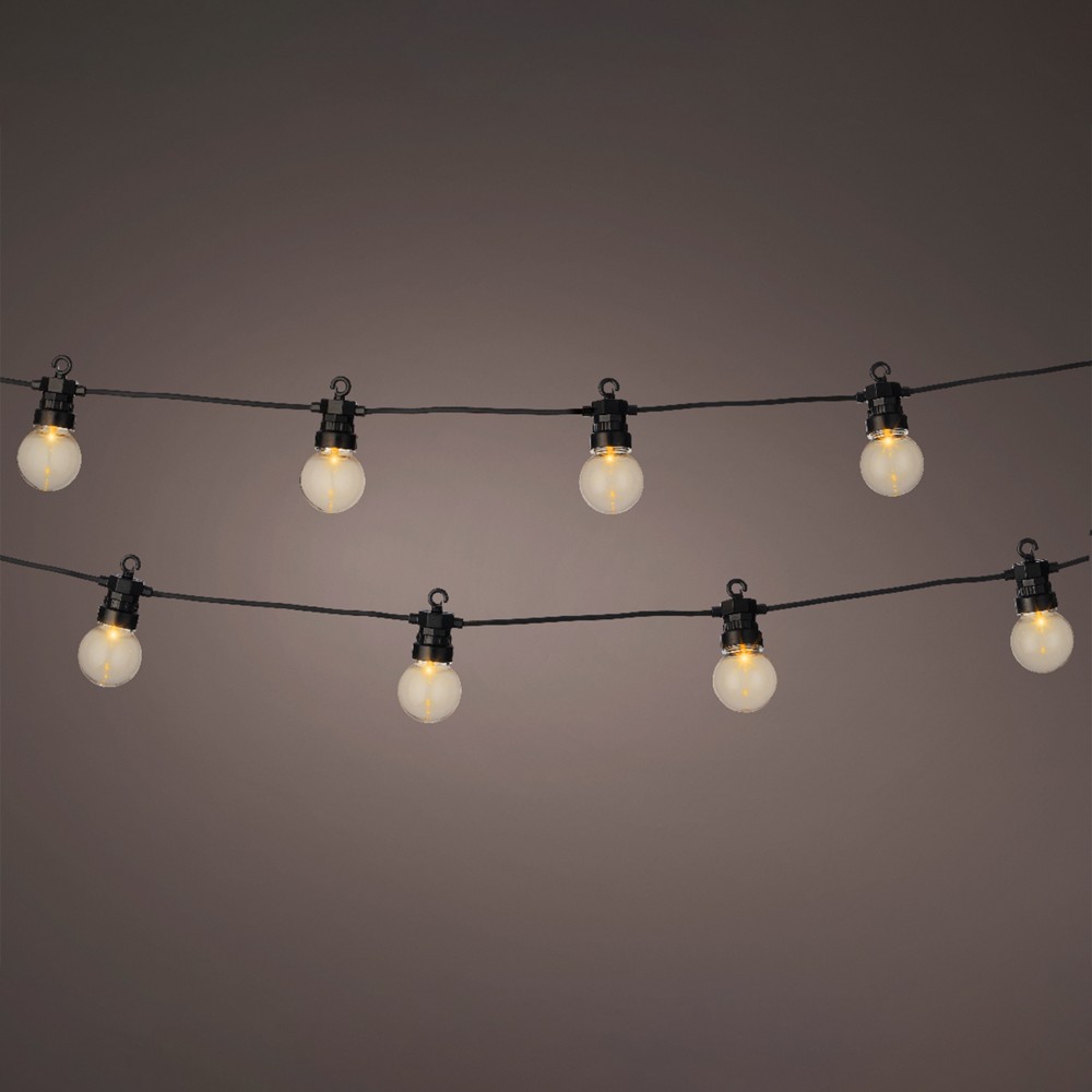 Po vlerësoni:Varg ndricues festiv, 20L, 9.5 m, D4.5 cm, 50 cm, statike, distance, kabell I zi, ngjyre e ngrohte klasike, zgjatues 3 m per lidhje me rrjetin, IP44