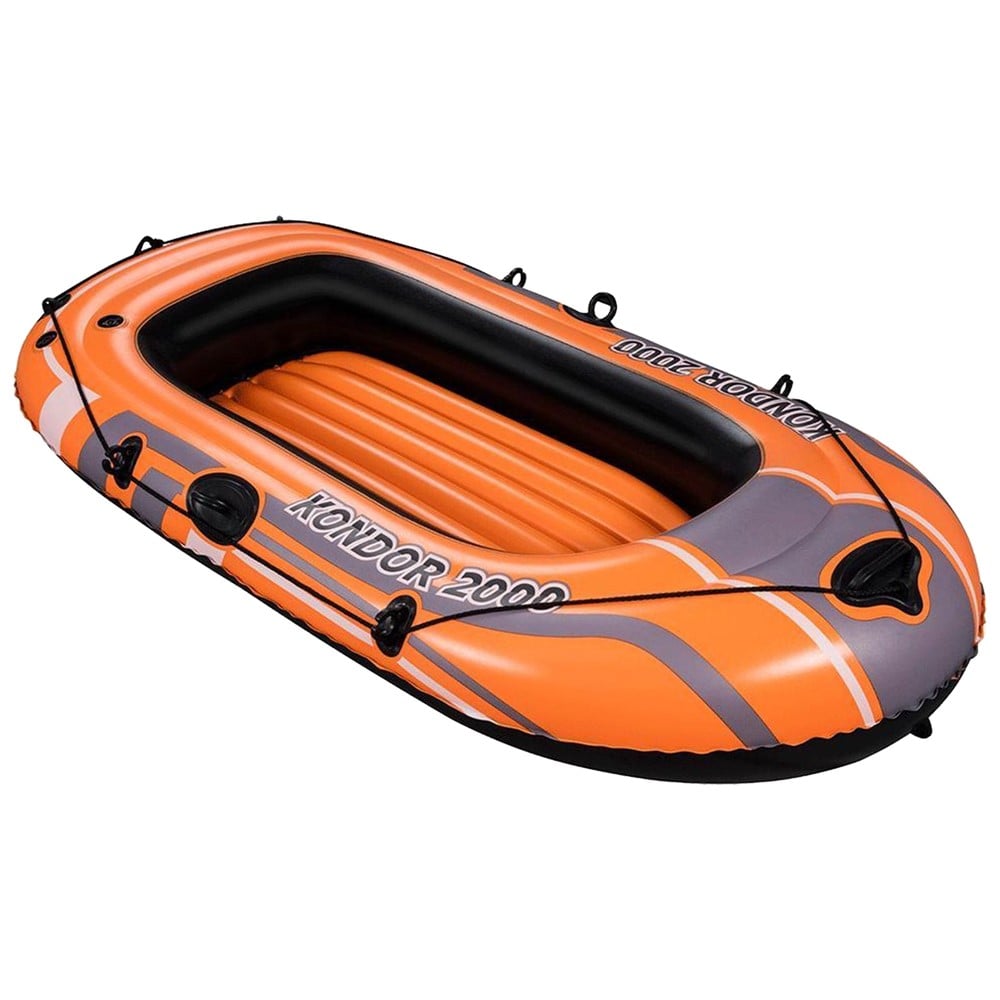Varka me fryrje jashtëzakonisht e fortë Kondor 2000 nga Bestway® është bërë nga vinyl i para-testuar dhe u ofron fëmijëve të veçantë një theks të vërtetë në ujë. Një litar mbajtës i gjithanshëm i lidhur me gypa plastike e bën më të lehtë rikthimin shpejt pas rënies në ujë. Ekziston edhe një kalim me litar në hark, në mënyrë që gomone të tërhiqet lehtësisht pas jush. Kapëse të përshtatshme janë ngjitur në anët për të siguruar rremat (nuk përfshihen). Kondor 2000 është perfekt për fëmijët e moshës 6-15 vjeç.