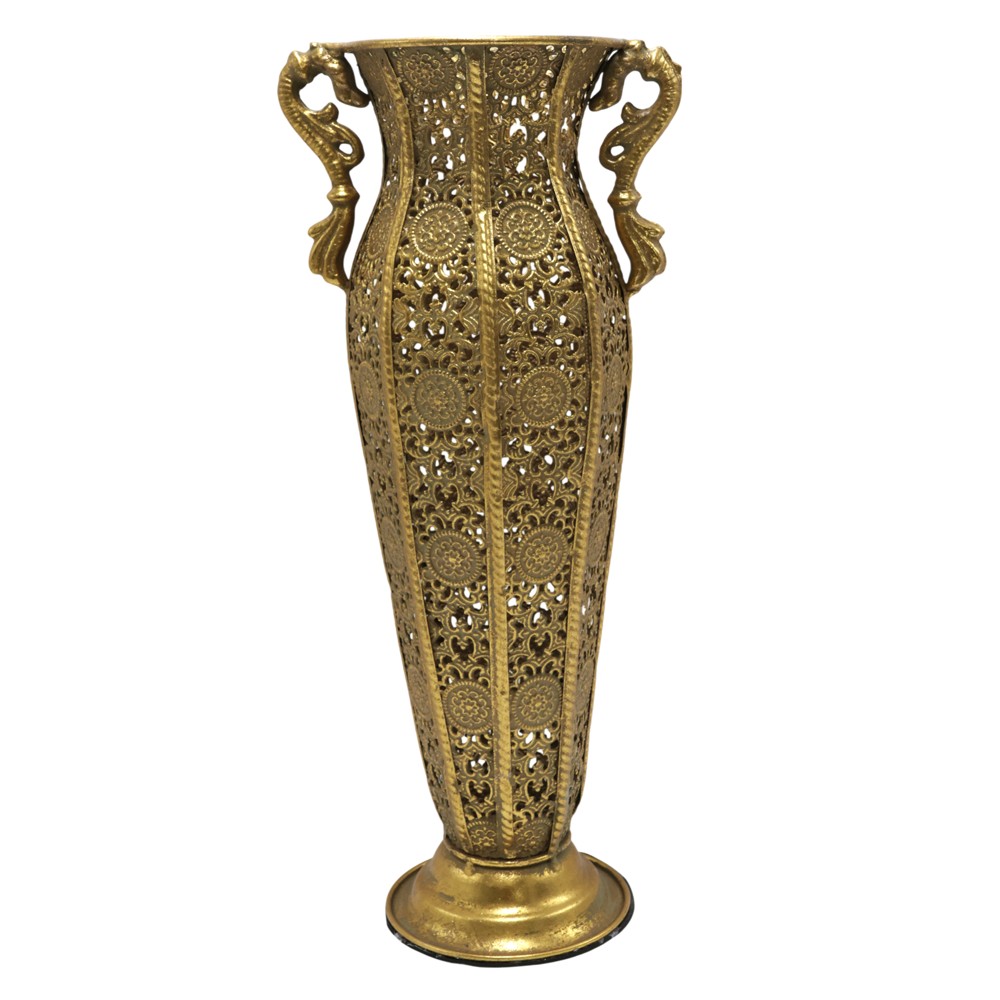 Kjo vazo metalike është zgjedhja ideale për ata që kërkojnë elementë dekorativ të veçantë dhe me klas për ambientet e tyre. Me një pamje elegante dhe të sofistikuar, kjo vazo duhet shtuar patjetër në listën tuaj të blerjeve. Unike dhe me klas, me një formë të cilën ju mund ta përshtasni shumë mirë me dekorimin e dhomave dhe ambienteve të ndryshme. Vjen në përmasat 18xH39 cm dhe mund ta përdorni edhe në kompozime të ndryshme me lule artificiale apo edhe si objekt më vete. Shtojini ambienteve tuaja prekjen luksoze të munguar.