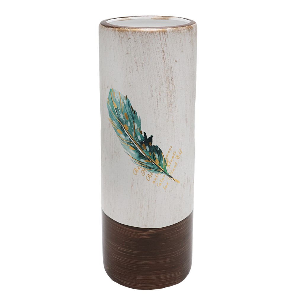 Vazoja dekorative është një pjesë elegante e dekorit për shtëpinë tuaj. E bërë nga porcelani i cilësisë së lartë, kjo vazo e bardhë me nuanca e kafe është një kombinim i përkryer i stilizimit dhe shkëlqimit. Me dimensionet 11xH32 cm, ajo është e përshtatshme për të qenë pikë fokusi në tavolinën e kafesë, tavolinën e ngrënies ose në çdo hapësirë tjetër që dëshironi të dekoroni. Forma e saj elegante dhe ngjyrat e pastër i japin shtëpisë suaj një ndjenjë të rafinuar dhe të bukur.