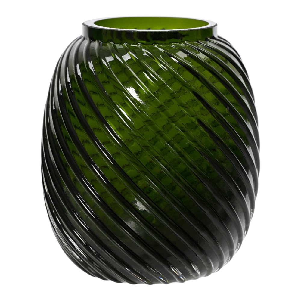 Kjo vazo dekorative prej qelqi është në ngjyrë jeshile të thellë dhe ka një dizajn elegant me teksturë spirale që i jep një efekt modern dhe tërheqës. Me përmasa Dia.18xH22 cm, ajo është ideale për të mbajtur lule të freskëta, lule artificiale, apo për t'u përdorur si një element dekorativ i veçantë në çdo ambient. Ngjyra e gjelbër e bën të përshtatshme për stilime natyrore dhe elegante, duke shtuar ngjyrë dhe karakter hapësirës ku vendoset.