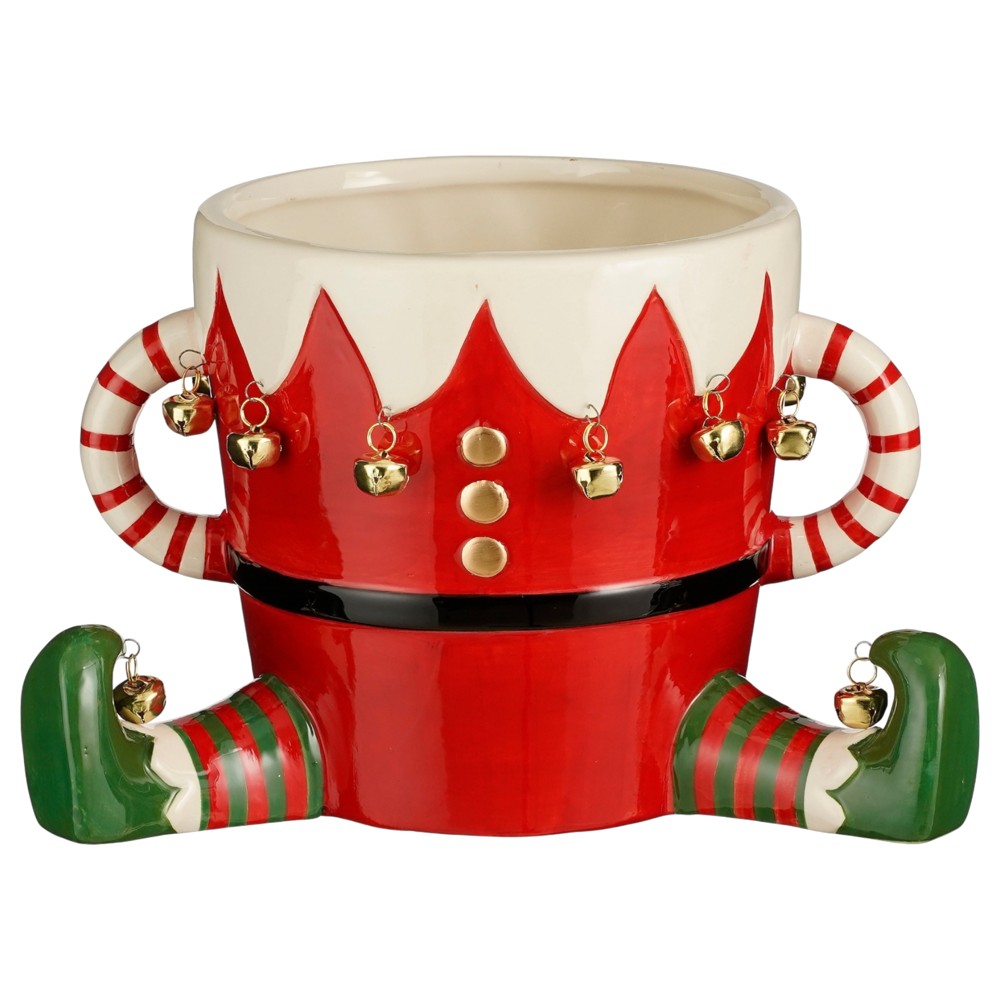 Vazo dekoruese me motive Christmas, Elf, ngjyre e kuqe, l29xw18xh17cm