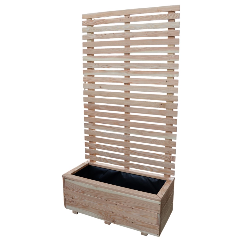 Vazo moderne për bimë me kafaz mbështetës të integruar, e projektuar për të sjellë gjelbërim dhe stil në kopshte, terasa dhe ballkone. E prodhuar nga 100% dru larshi, kjo pjesë elegante dhe e qëndrueshme është ideale për rritjen e bimëve kacavjerrëse, luleve ose erëzave aromatike, duke ofruar njëkohësisht privatësi natyrale dhe një efekt dekorativ.
