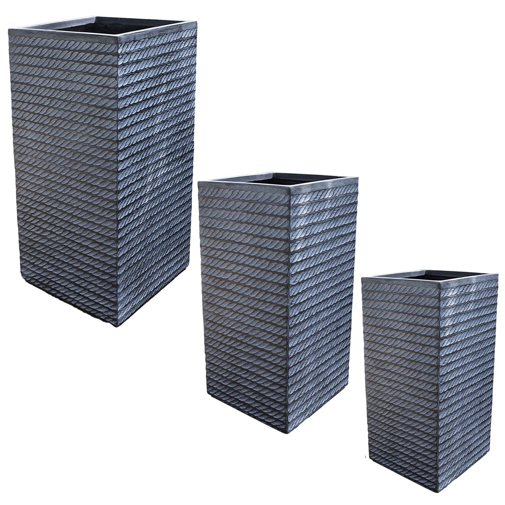 Vazo lulesh, 3 copë, fibër xhami/argjilë, e zezë, 24x24x51.5 cm; 30x30x63.5 cm; 37x37x77.5 cm