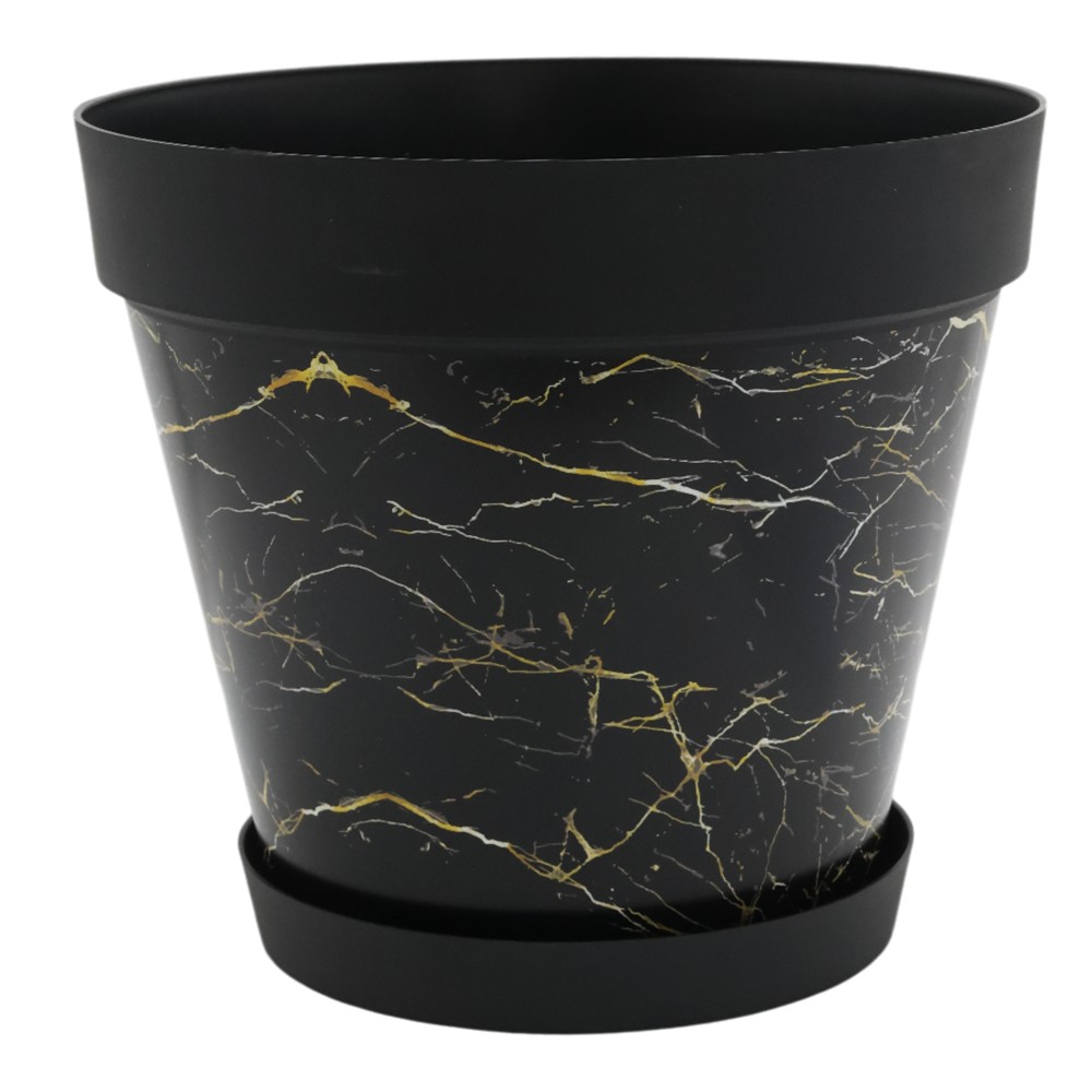 Vazo lulesh, Desenli, plastike, e zezë, Ø26xH23 cm