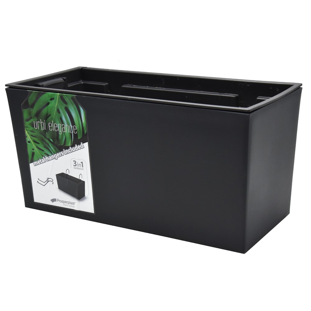 Po vlerësoni:Vazo lulesh, drejtkëndore, për kangjella, Urbi Case W, plastike, antrasit, pa pjatë, vrimë kullimi, 39.5x18.5xH19.5 cm