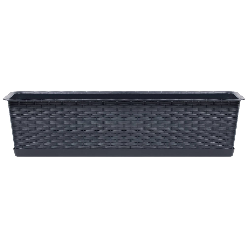 Vazo lulesh, drejtkëndore, Rotolla case P, plastike, antrasit, pjatë e përfshirë, 78.3x17.3xH15 cm, 13.5 lt
