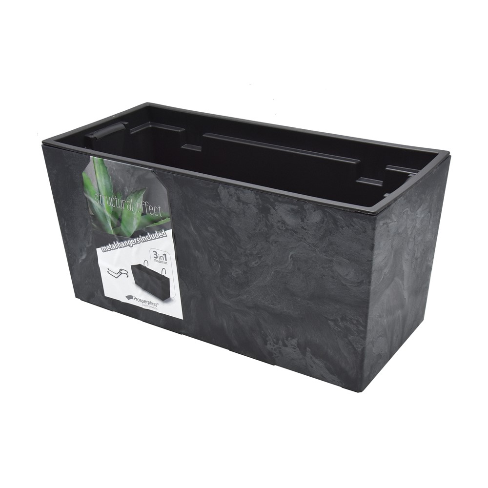 Po vlerësoni:Vazo lulesh, drejtkëndore, Urbi Case W, plastike, antrasit, pa pjatë, 39.5x18.5xH19.5 cm
