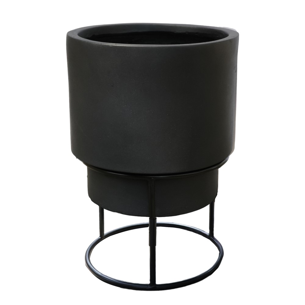 Vazo lulesh, fibër xhami/argjilë, e zezë, 24x24x35 cm